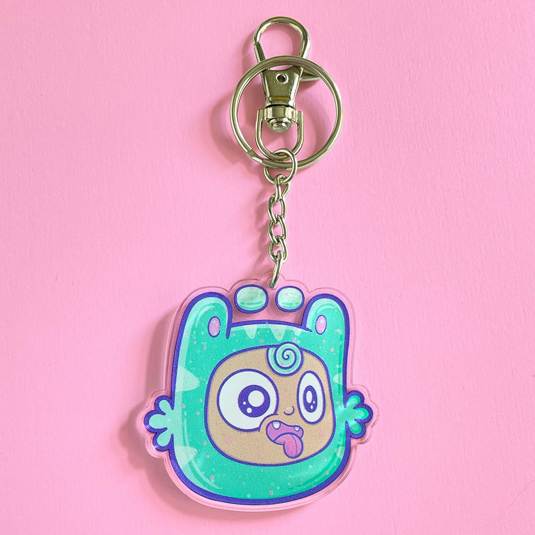 Super cute floating bear head charm made from clear recycled acrylic, perfect as a keyring or flapping around on the loop of a bag.