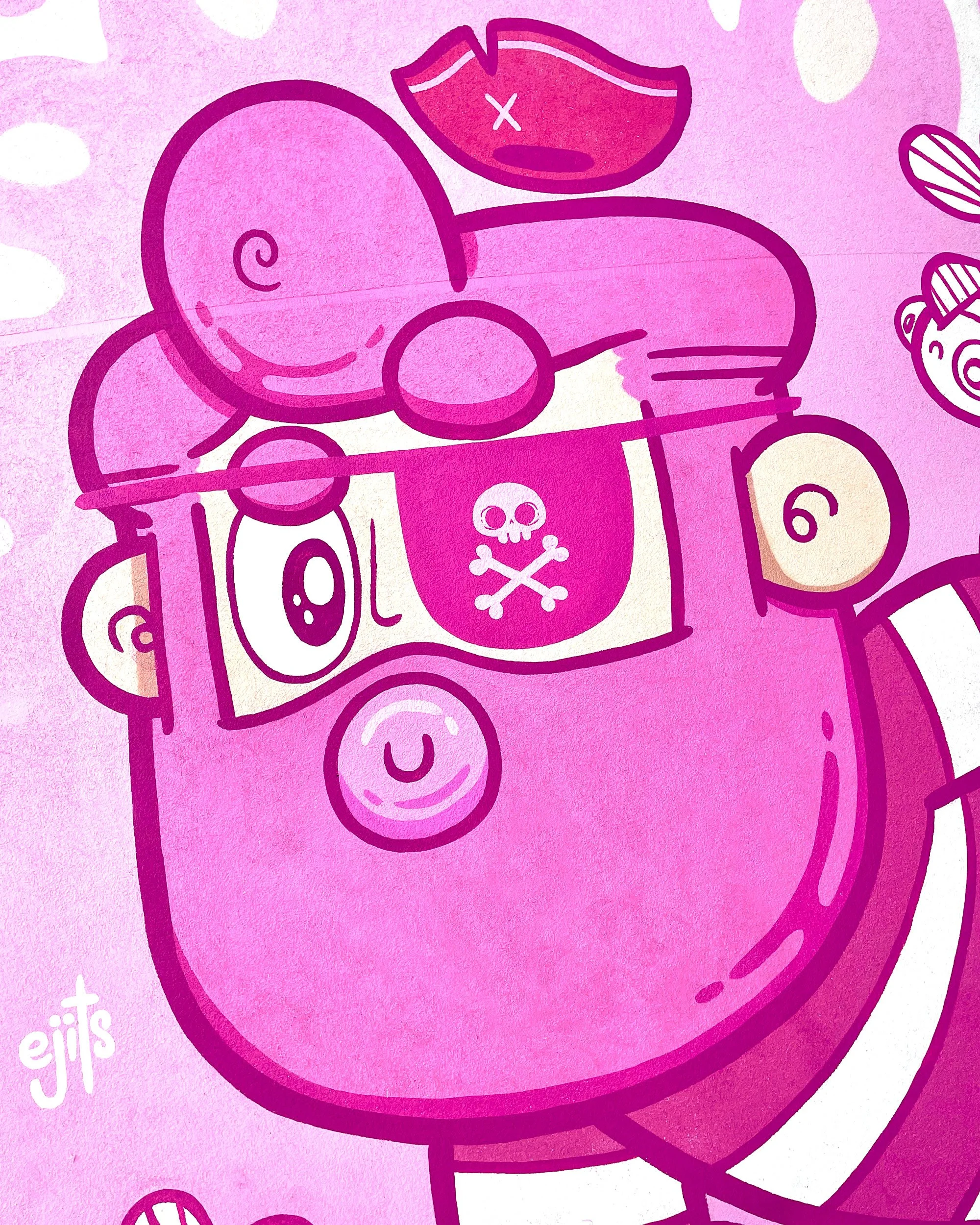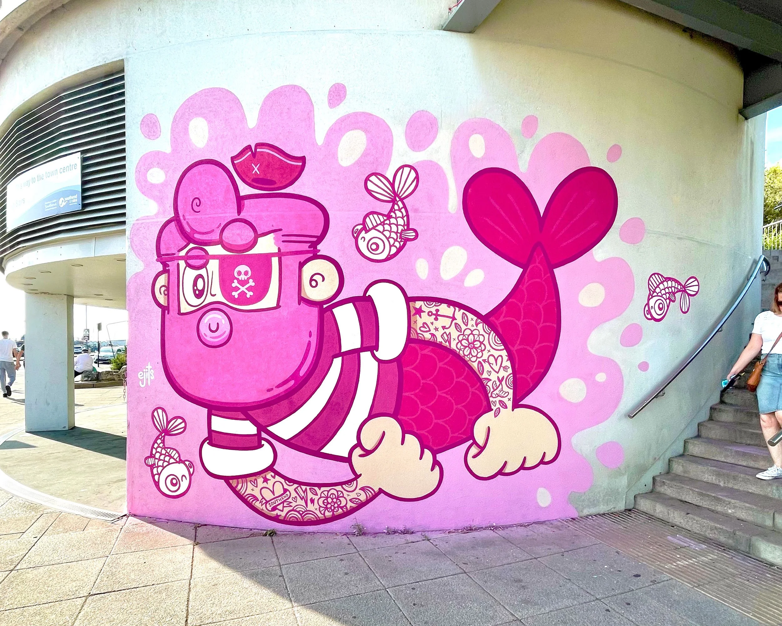 This character is called Pink Beard which plays on name Black Beard, one of the most famous pirates of all time who just happens to come from my home city of Bristol. I painted this piece for Southend City Jam 2023 on the side of the Pier Lift – another seaside city who I thought might enjoy this piece.