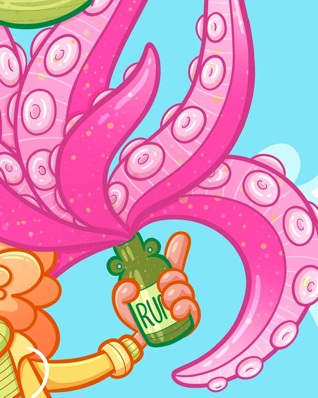 I’m fascinated by mythology and the ways we have of romanticising the mundane so giant sea creatures, pirates and old maps with ‘There be Dragons’ warnings are themes I’ll come back to over and over. This piece bubbled away in the back of my mind for a long time. I even tried to put it down on paper a few times but wasn’t happy with it and then one day I revisited it and for some reason it all fit together.